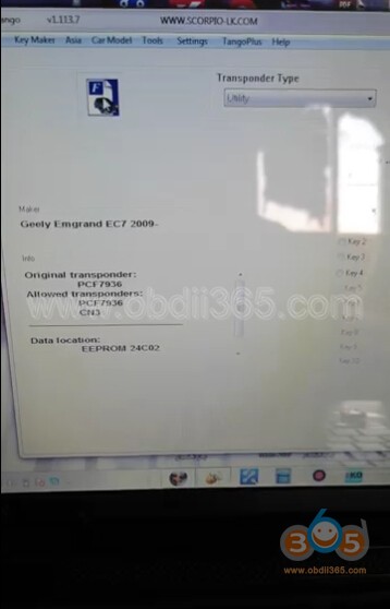 Immobilizer-> Renault-> انتخاب از وسیله نقلیه-> Clio-> Clio IV-> 2012-> اضافه کردن کلید / بازیابی اطلاعات