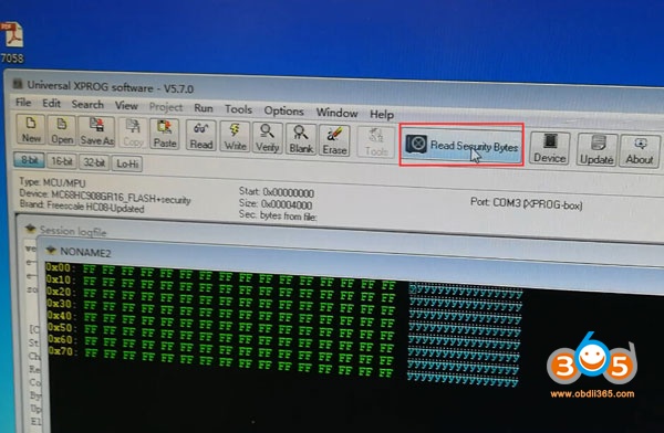 در نرم افزار Xprog-m، Freescale MCU MC68H908GR16_FLASH + security را انتخاب کنید