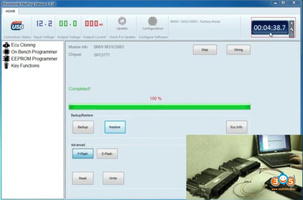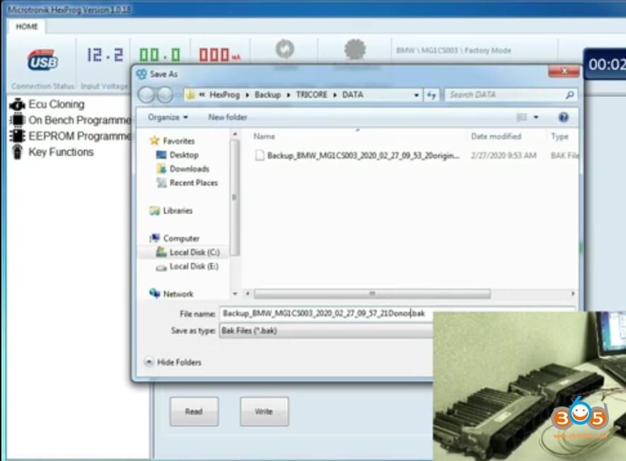 بعد از اینکه نرم افزار با موفقیت حافظه وسیله نقلیه را خواند ، نتیجه نمایش داده شده شبیه به مثال نشان داده شده در تصویر زیر خواهد بود:
