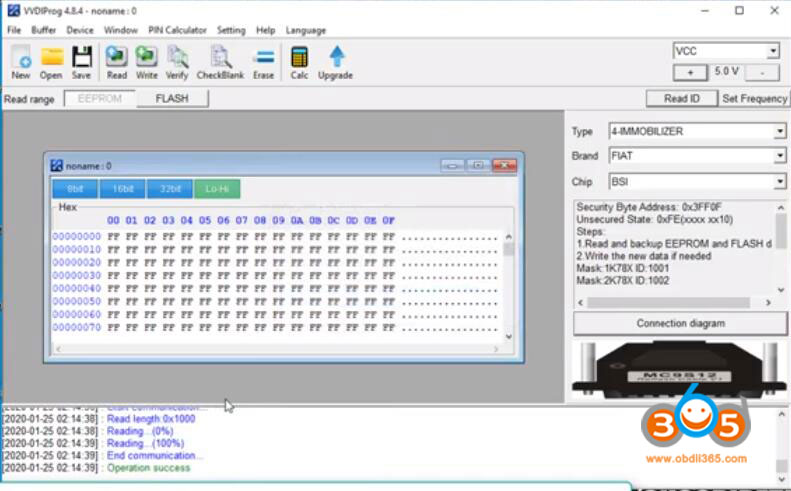 پس از بارگذاری رابط استاندارد برای نوشتن شبیه ساز ظاهر می شود. از دکمه Save File برای ذخیره اطلاعات خوانده شده و Open File برای درگیر کردن آن استفاده کنید.