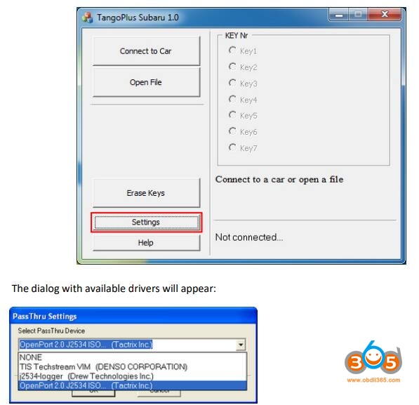 درایور را طبق نیاز تولید کننده آداپتور نصب کنید. Tango + Subaru.exe را راه اندازی کنید و روی دکمهSETTINGS کلیک کنید.