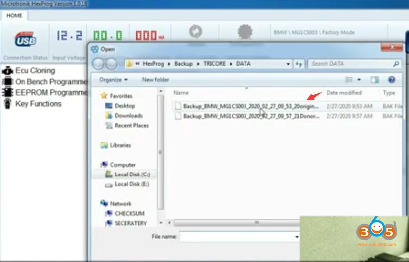 این پرونده ممکن است با استفاده از دکمه Open File که بدون ماشین در دسترس است ، به نرم افزار بارگذاری شود.