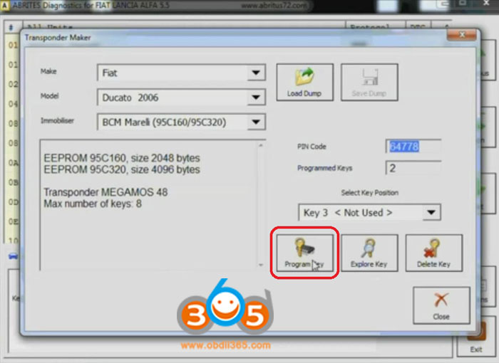 کلید Ducato / Jumper / Boxer 2006 توسط OBD با  SVCI 2018: