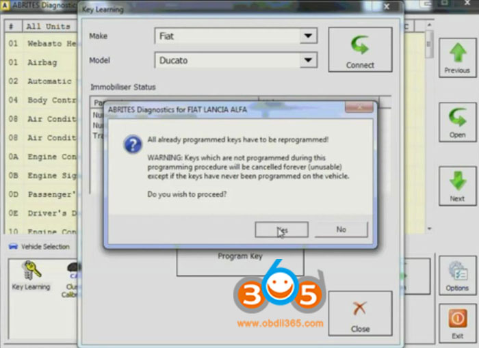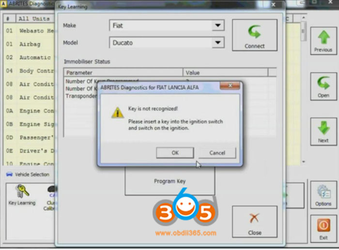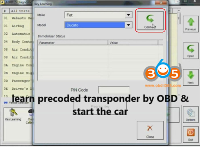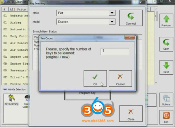 بر روی "Key Learning" کلیک کنید ، سپس Fiat Ducato را انتخاب کنید.
