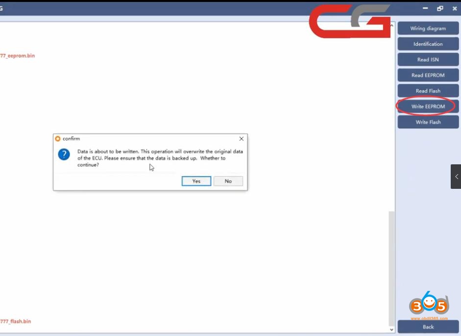 نوشتن EEPROM را  انتخاب کرده و Yes را  برای نوشتن داده فشار دهید