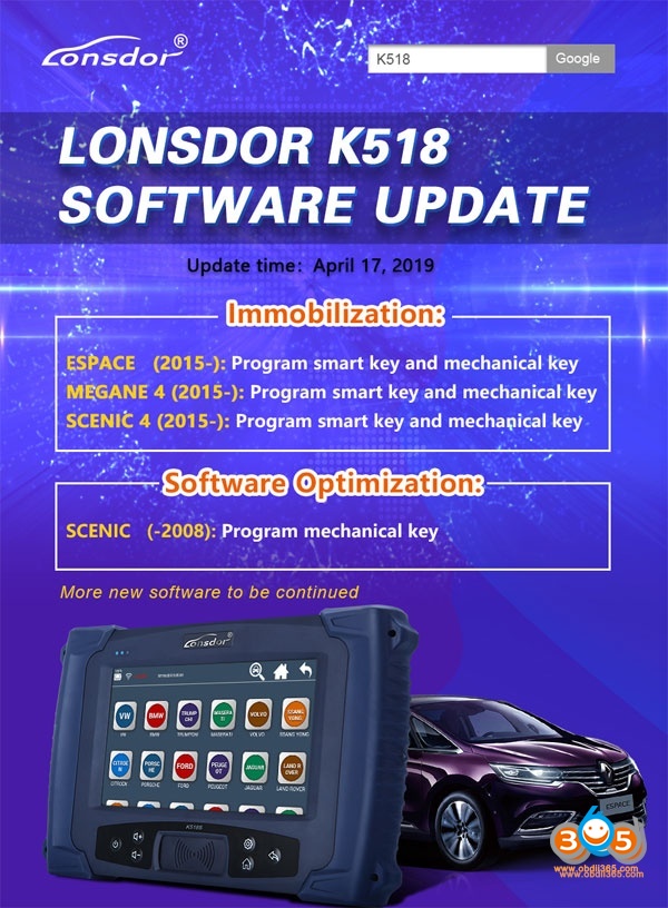 Lonsdor می افزاید Scenic IV 2015 up key key و برنامه نویسی کلید مکانیکی در 17 آوریل 2020