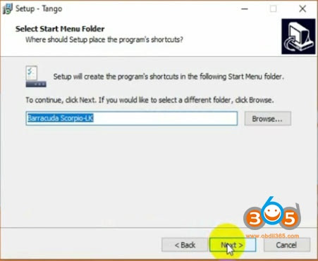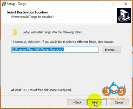 پوشه مقصد را انتخاب کنید: (پیش فرض:  رایانه من> دیسک محلی (C :)> پرونده های برنامه (x86)> Tango Scorpio-LK).