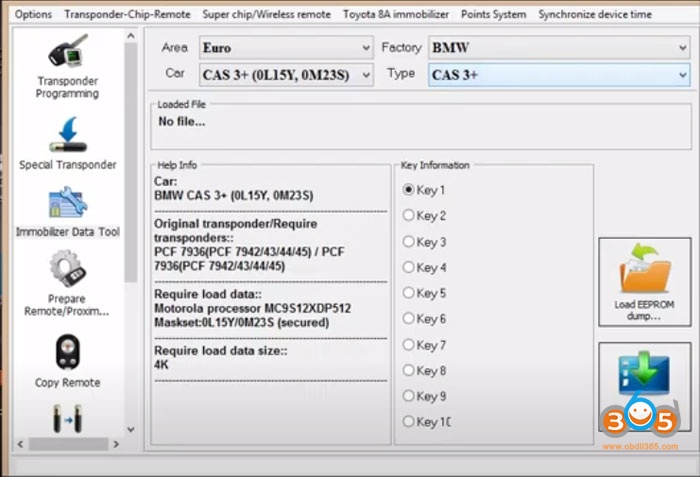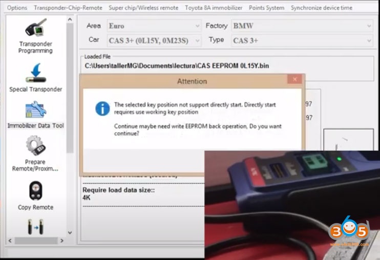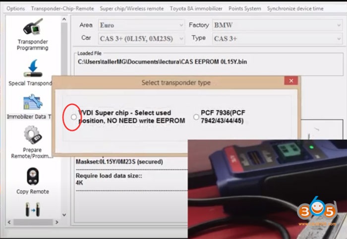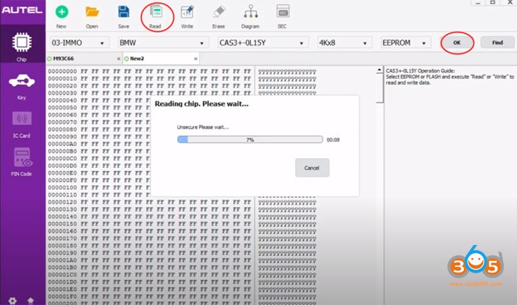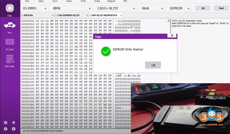 در نرم افزار XP400 ، عملکرد Chip را انتخاب کنید -> 03-IMMO-> BMW-> CAS3 + 0L15Y EEPROM ، OK را فشار دهید