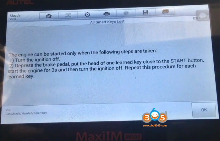 چگونه به: برنامه Mazda 6 year 2017 ID49 کلید هوشمند توسط Autel MaxiIM IM508 / IM608 وقتی تمام کلیدها از طریق OBD گم شدند. حداقل 2 کلید مورد نیاز است.