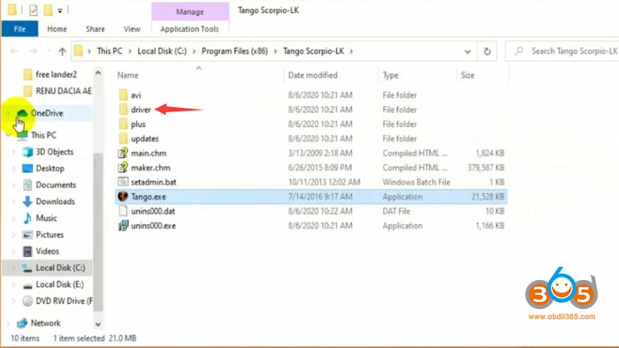 پوشه درایور C: / پرونده ها / برنامه / Tango Scorpio-LK را باز کنید