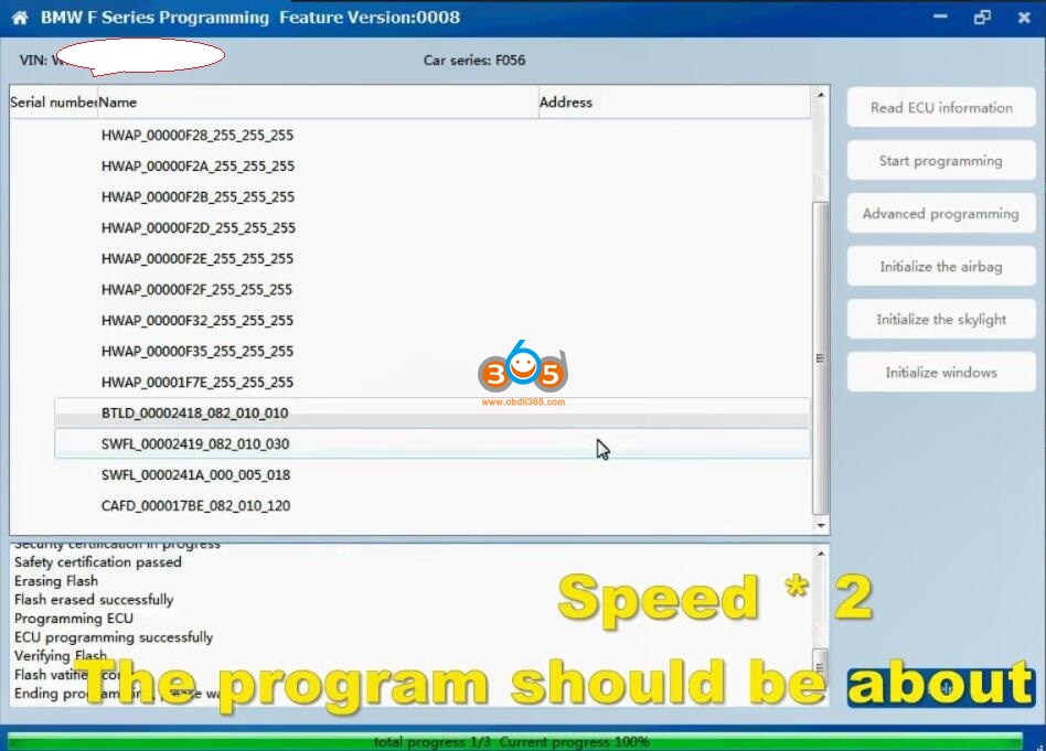 وقتی 100٪ را نشان می دهد ، به معنای موفقیت برنامه نویسی ECU است.