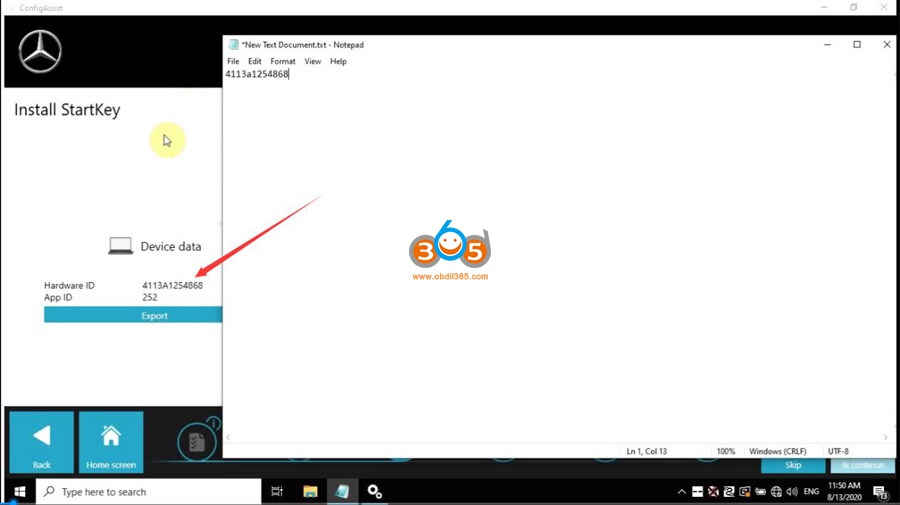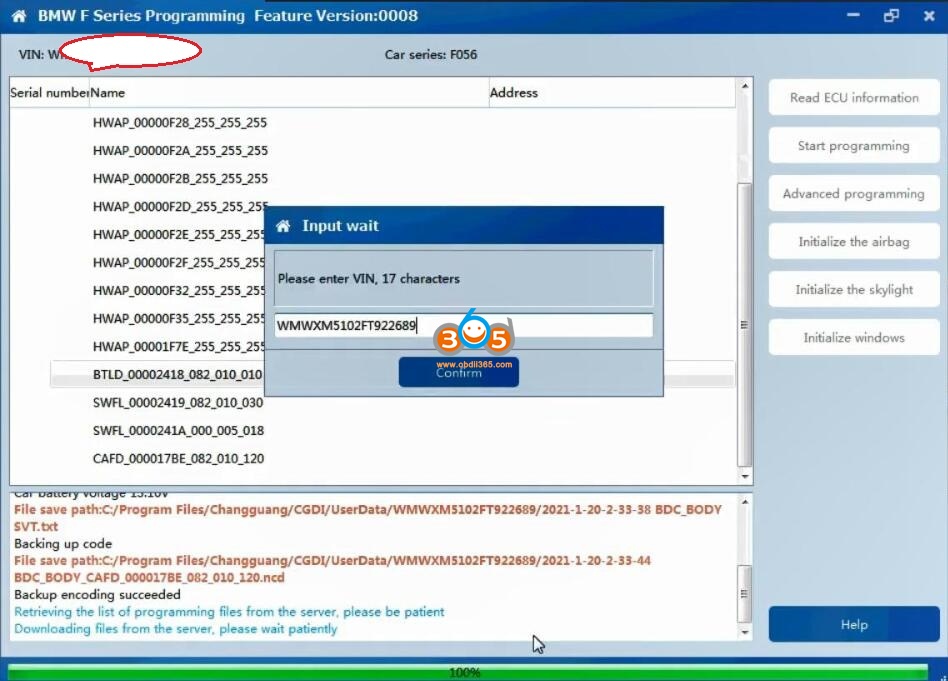 وقتی 100٪ نشان داده شود ، از شما خواسته می شود VIN 17 نویسه وارد کنید.