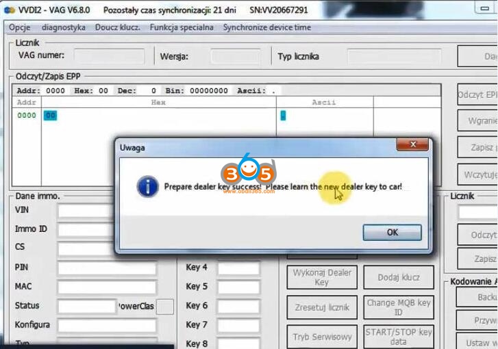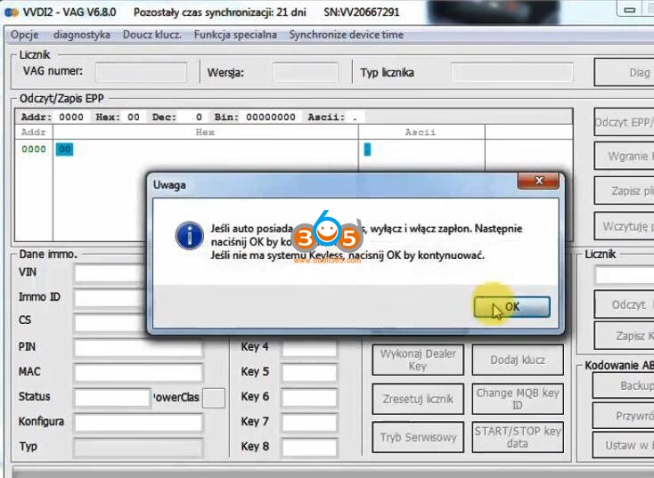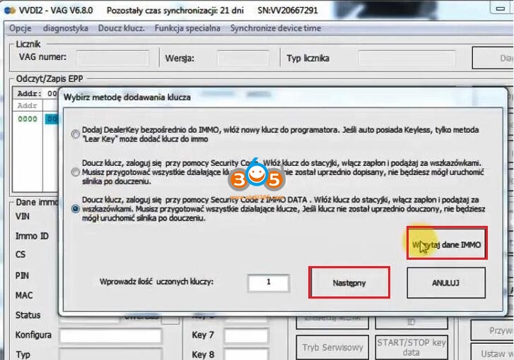 توجه 2: با استفاده از این داده های ایمو در دستگاه IMMO دیگر نمی توانید کلید جدید حذف و کلید یادگیری را یاد بگیرید.