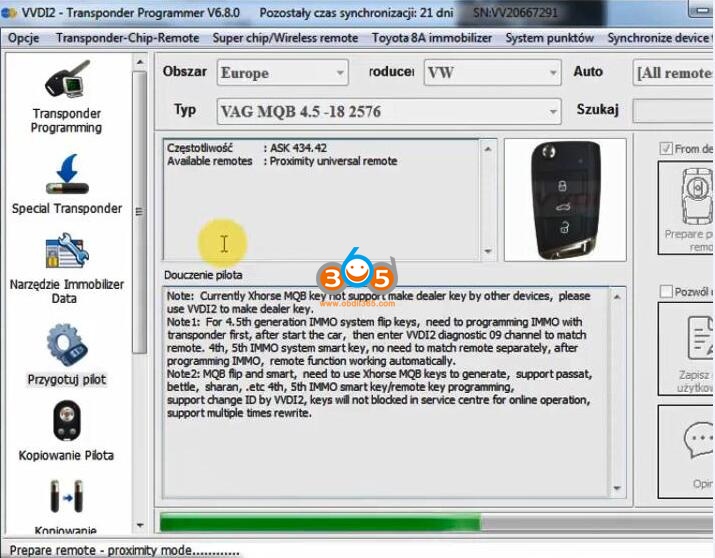 "" ورودی از راه دور MQB را به برنامه نویس VVDI2 دهید و ادامه دهید.