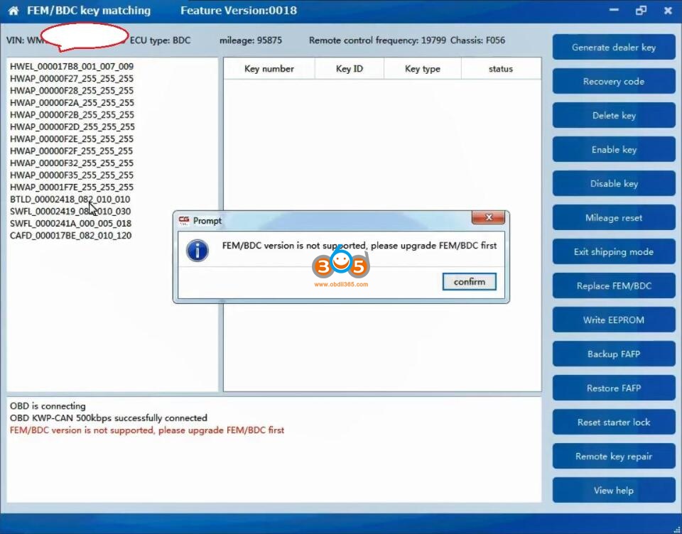 کاربران عزیز CGDI Prog BMW Programmer: طی روزهای گذشته ، برخی از قفل سازان بازخورد می دهند که وقتی روی "مطابقت کلید FEM / BDC" کلیک می کنند ، سریع "FEM BDC نسخه پشتیبانی نمی شود ، لطفاً ابتدا FEM / BDC را ارتقا دهید" دریافت می کنید ، همین مشکل را دارید ، لطفاً برای حل آن این راهنما را دنبال کنید.
