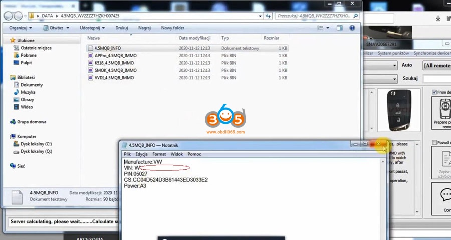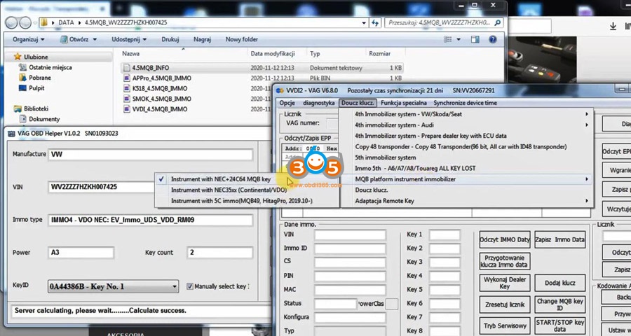 توجه: IMMO4 - NEC24C64 بخش موفقیت اطلاعات داده ایمو ذخیره شده در پوشه C: //