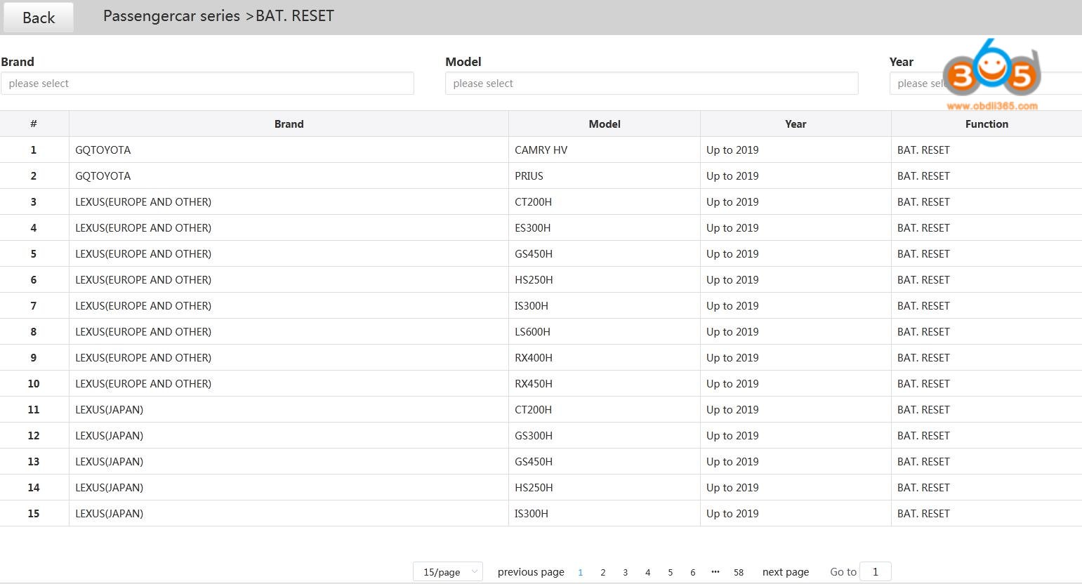 بر روی "Reset" و سپس "BAT" کلیک کنید. RESET ”، فقط مارک ، مدل ، سال را انتخاب کنید و می توانید تأیید کنید که آیا مدل و سال خودروی شما پوشش داده شده است.