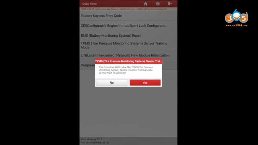 مرحله 4. بازگشت به X431 V + Ford V48.20 -> جستجوی خودکار -> گزارش های بهداشتی -> BCM (ماژول کنترل بدن) ، برای اطمینان از آموزش همه سنسورها ، روی "بله" ضربه بزنید.