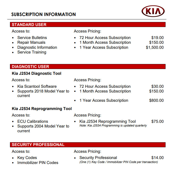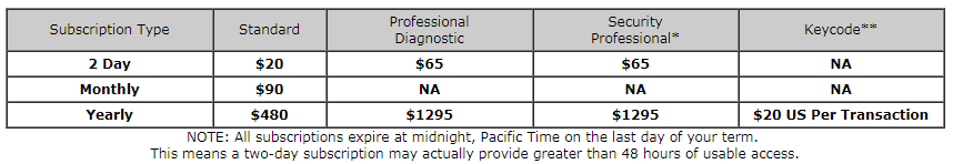 شما می توانید با هزینه 65 دلار اشتراک 2 روزه خریداری کنید. سپس باید منتظر ایمیل باشید (تا نیم ساعت) سپس می توانید دوباره وارد سایت شوید و 1 کد کلید رایگان دریافت کنید. خیلی سریعتر است که فقط سیلندر قفل درب راننده ها را بیرون بیاورید و کد اصلی را بگیرید. درست روی آن مهر شده است!