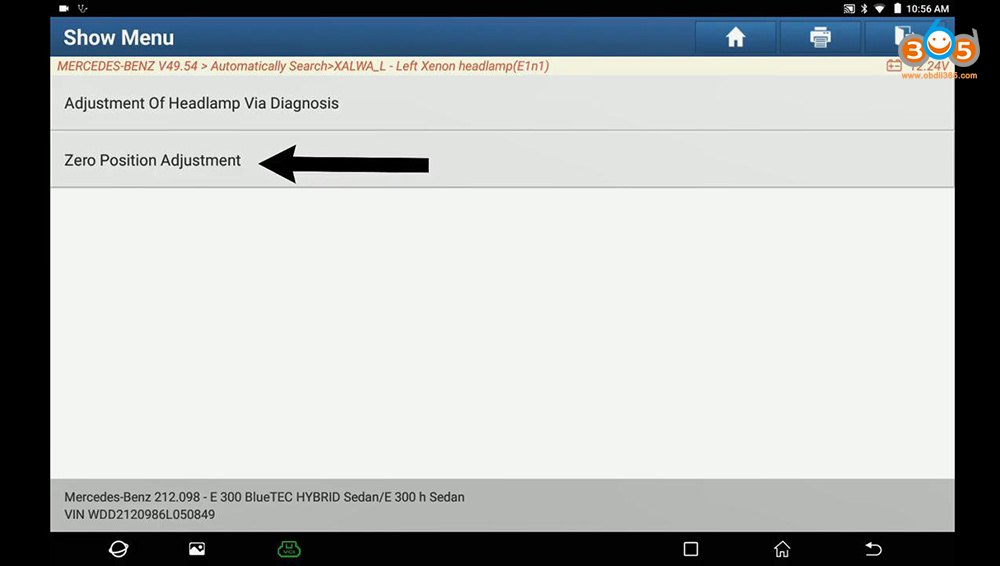 کالیبراسیون چراغ جلو Launch X431 PAD V مرسدس بنز E300h W212 زنون DTC C156E00 کالیبراسیون سطح خودرو انجام نشد.