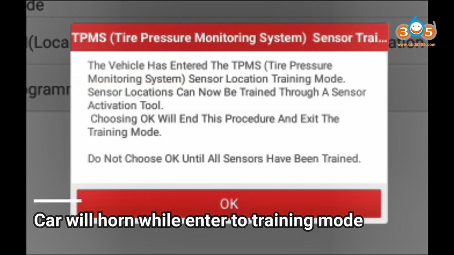 اکنون مکان های حسگر را می توان از طریق ابزار فعال سازی سنسور X431 TSGUN آموزش داد. تا زمانی که همه سنسورها آموزش ندیدند ، OK را انتخاب نکنید.