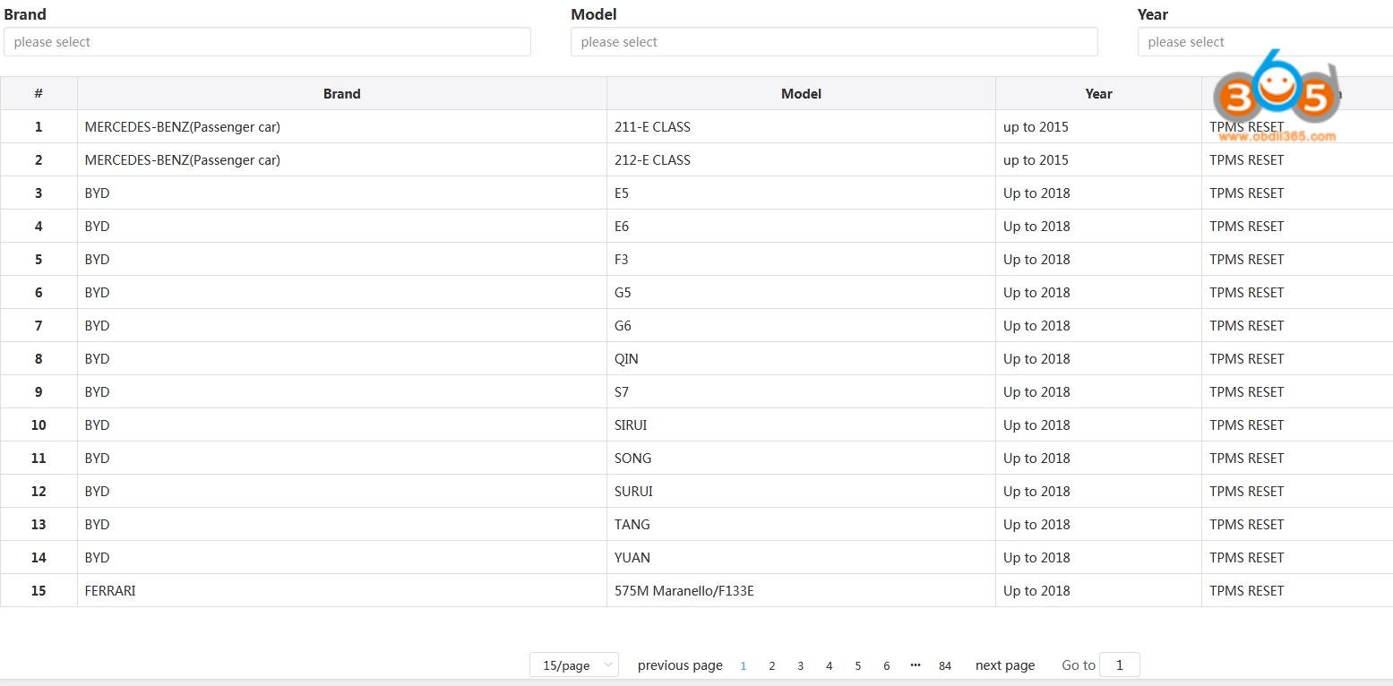 و می بینید که 84 صفحه وجود دارد ، به این معنی که X431 V + می تواند TPMS را برای مجموعه ای از مدل های ماشین تنظیم کند.