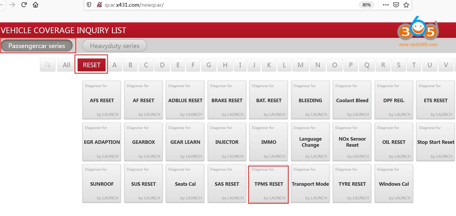 بر روی "Reset" و سپس "BAT" کلیک کنید. RESET ”، فقط مارک ، مدل ، سال را انتخاب کنید و می توانید تأیید کنید که آیا مدل و سال خودروی شما پوشش داده شده است.
