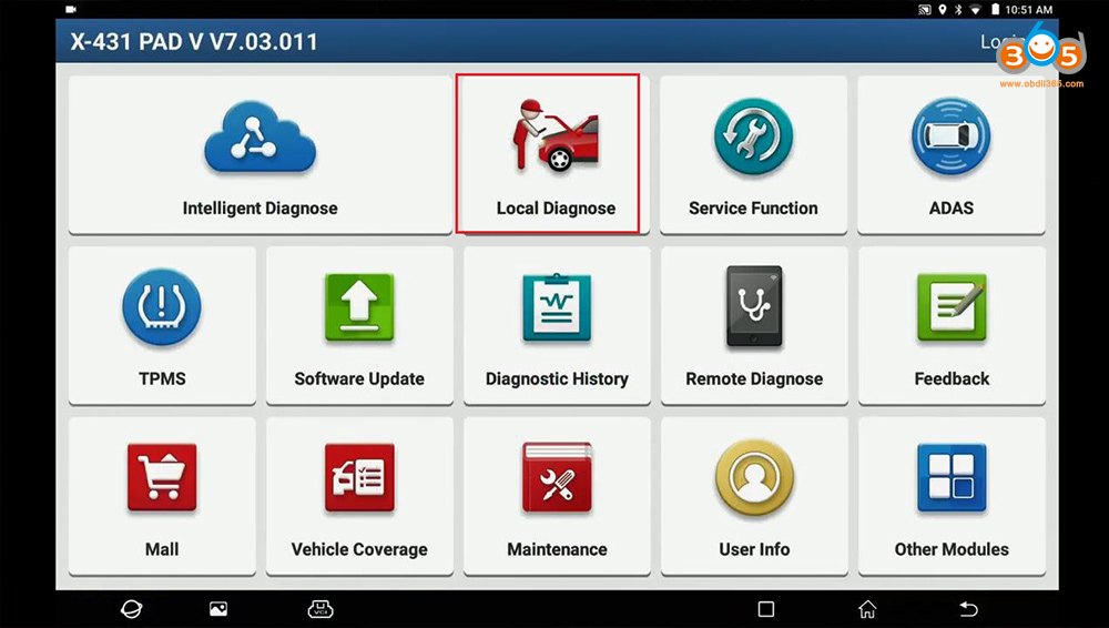 در عملکرد X431 Pad 5 ، روی "تشخیص محلی" ضربه بزنید.