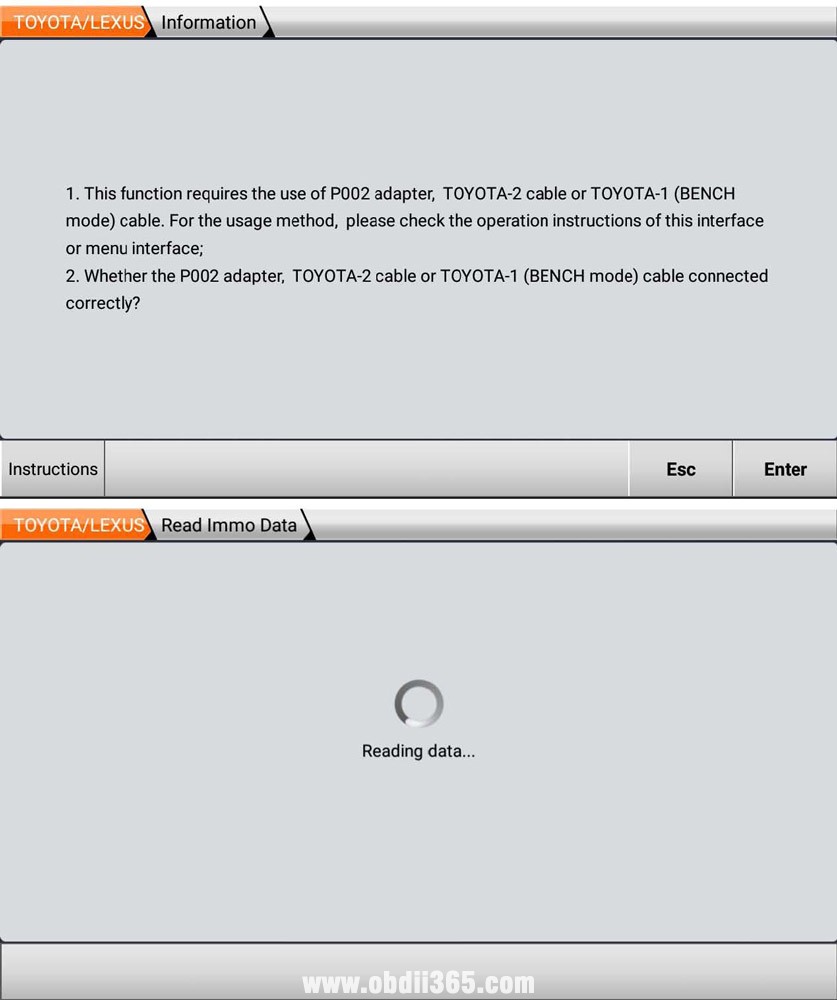 این روش استفاده از آداپتور OBDSTAR P002 با OBDSTAR X300 DP Plus برای برنامه نویسی کلید کلیدهای غیر هوشمند Toyota 8a از دست رفته از طریق حالت نیمکت یا نیمکت است.
