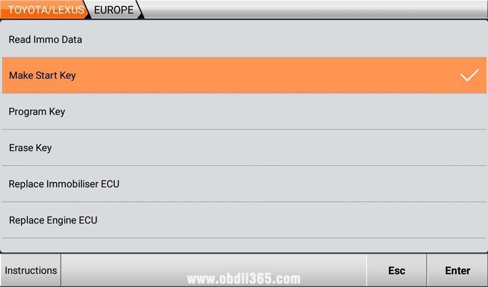 دستگاه تشخیصی می تواند داده های IMMO را بخواند و کلید اصلی را برای راه اندازی وسیله نقلیه ایجاد کند. کلید اصلی