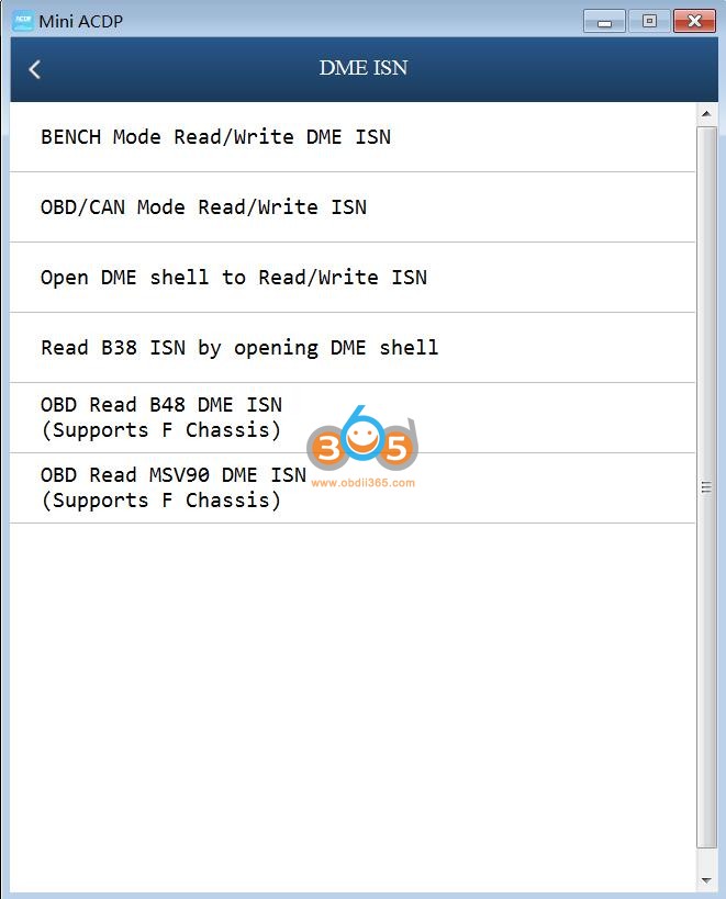 روی "Bench Mode Read /Write DME ISN" کلیک کنید.