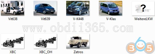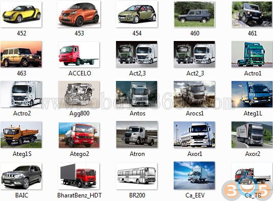 Xentry XODS می تواند با اتومبیل های مرسدس بنز، وانت، کامیون، unimogs، اتوبوس، ماشین های سوپر اسپرت، اسباب بازی های عمده صنعتی کار کند