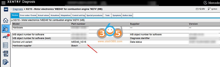 7. اکنون پنجره "MED40" ، "System: MED40" / "ECUs" / "MED40 - xxxxxx" را نشان می دهد
