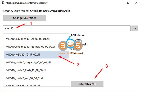 28. " MED40_MED40_ …… .dll" را انتخاب کنید . چرا باید فایل dll را انتخاب کنم؟ مرسدس در هر DLL یک الگوریتم کلید کلیدی مختلف را مخفی کرده است. ماشین حساب کلیدی به سادگی از الگوریتم استفاده می کند. بنابراین ، باید بداند کدام dll مورد استفاده قرار می گیرد. در صورت انتخاب dll اشتباه ، کلید اصلی به کلید اشتباه پاسخ می دهد و ECU به شما اجازه عبور نمی دهد. بنابراین ، شما نمی توانید اشتباه کنید. نگران نباش.