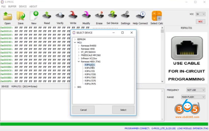 انتخاب کنید دستگاه-> MCU-> Renesas H8SX JTAG-> R5F61721