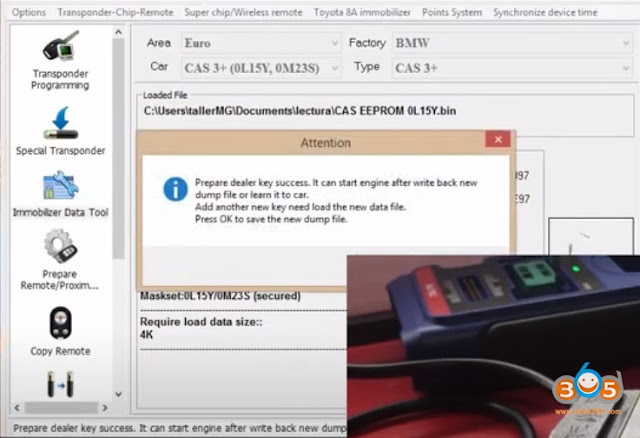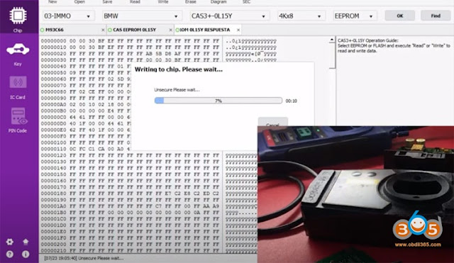 در نرم افزار XP400 ، عملکرد Chip را انتخاب کنید -> 03-IMMO-> BMW-> CAS3 + 0L15Y EEPROM ، OK را فشار دهید