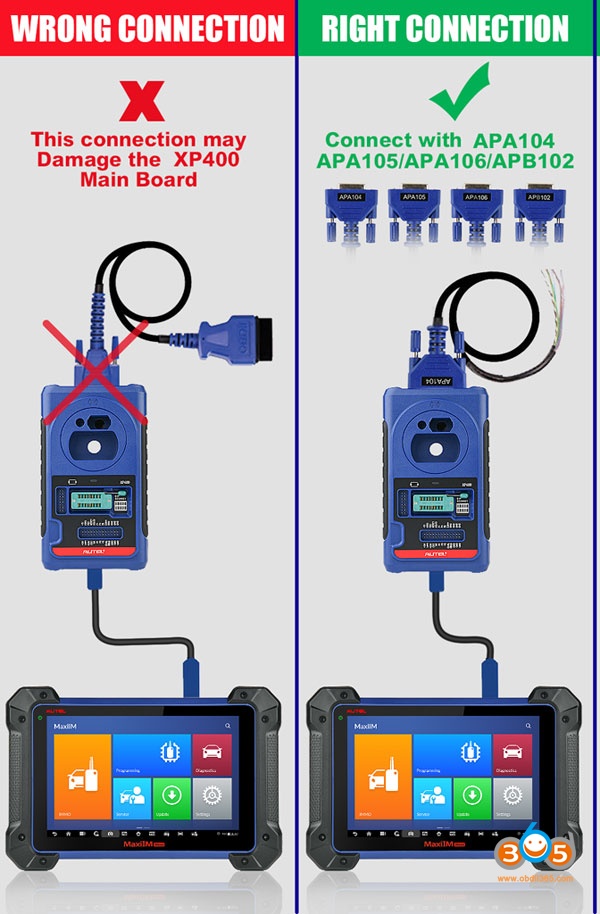 به ما گفته شده که Autel IM608 XP400 یا XP400 Pro را به OBD خودرو متصل نکنید. در غیر این صورت به xp400 آسیب می رساند.