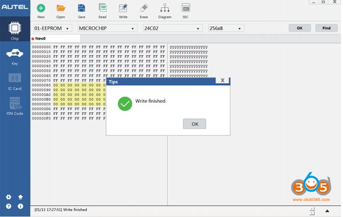نرم افزار Autel XP400 را اجرا کنید ، داده های جدید ریخته گری را باز کرده و نوشتن را فشار دهید