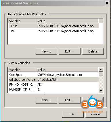 * متغیر مسیر را ویرایش کنید و مطمئن شوید که پیوست می کنید (به آخر اضافه کنید) موارد زیر: C: \ EDIABAS \ BIN